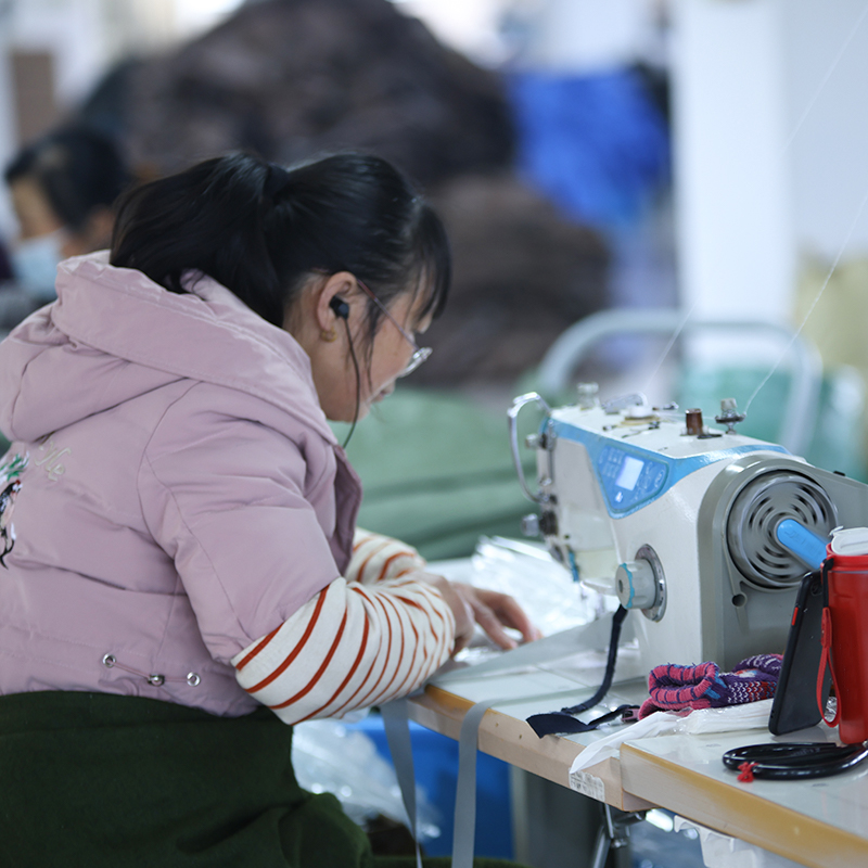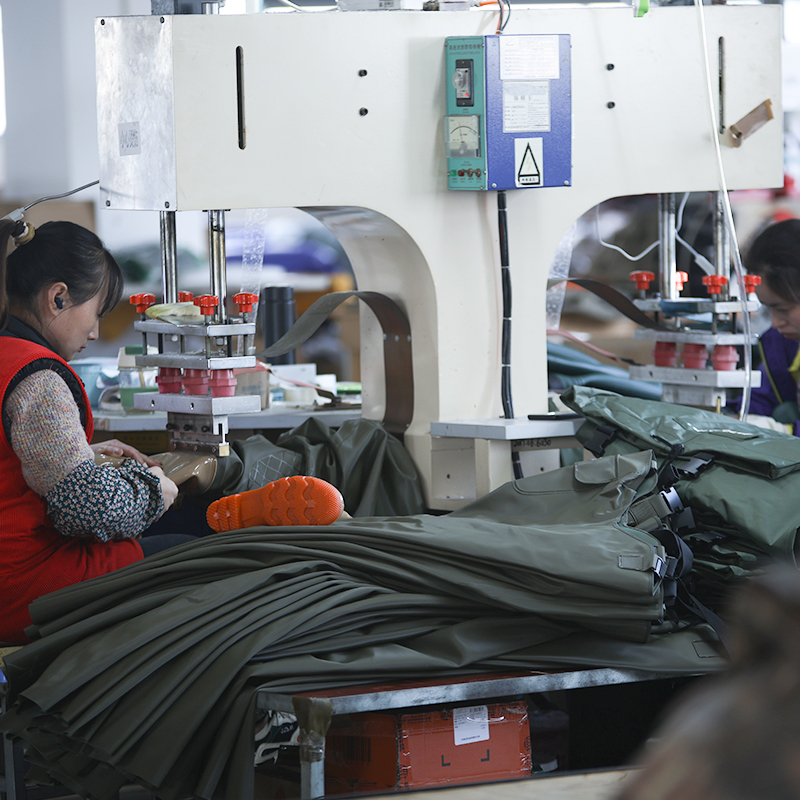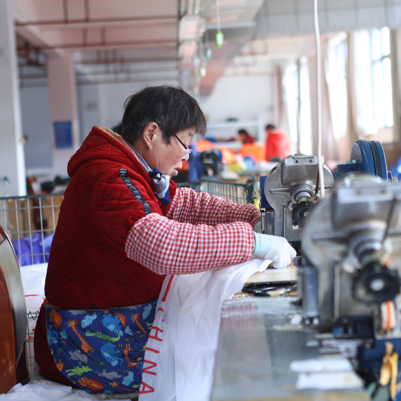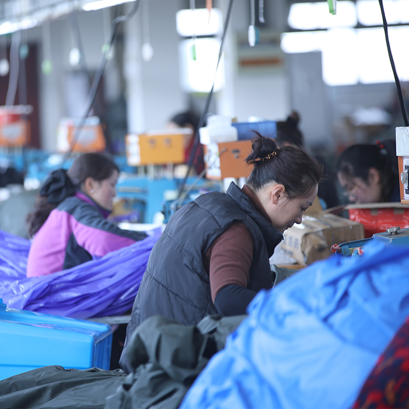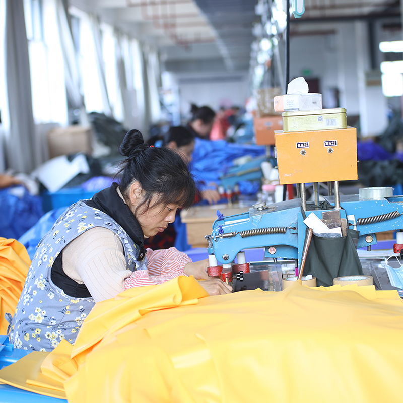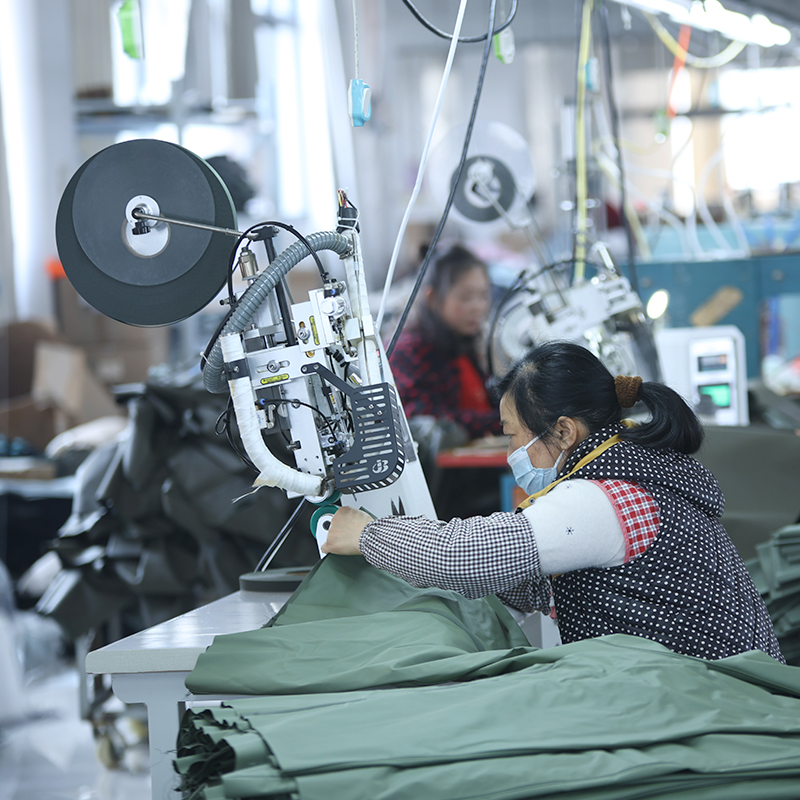 Momenteel zijn er 10 productielijnen, meer dan 60 hoogfrequente machines, die elk plaats bieden aan twee personen, meer dan 20 naaimachines en meer dan 200 operators. Om een efficiënte en hoogwaardige inkoopervaring te bieden, hebben we ook 3 kwaliteitsinspectiepersoneel en 5 R&D-personeel.