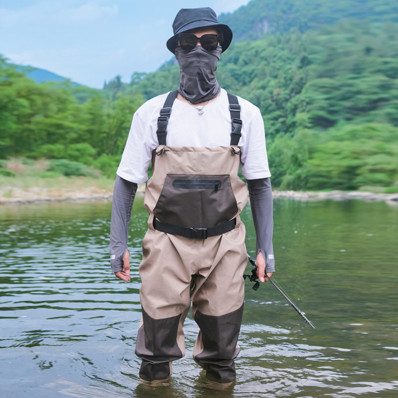 Drielaagse visbroek met hoge borst en ademende stof is een professionele visbroek ontworpen voor sportvissers. Het is gemaakt van hoogwaardige drielaagse ademende stof, die een goed ademend vermogen heeft en effectief vocht en warmte uit het lichaam kan verwijderen, waardoor de drager droog en comfortabel blijft. Deze visbroeken hebben een hoog uitgesneden ontwerp en de bedekking reikt tot boven de borst, wat het lichaam volledig kan beschermen en kan voorkomen dat water of vuil de binnenkant van de kleding binnendringt, wat een uitgebreidere bescherming biedt. Bovendien is het uitgerust met meerdere praktische vakken zodat vissers visgerei en uitrusting kunnen opbergen, waardoor de visserij-efficiëntie wordt verbeterd. Deze visbroek is gemaakt van lichtgewicht materiaal en is niet alleen licht en comfortabel, geschikt voor langdurig gebruik, maar heeft ook een goede slijtvastheid, is bestand tegen de wrijving en uitdagingen die u tijdens het vissen kunt tegenkomen en heeft een lange levensduur. Bovendien is het vaak wind- en waterdicht, waardoor vissers een betere bescherming hebben bij ongunstige weersomstandigheden.